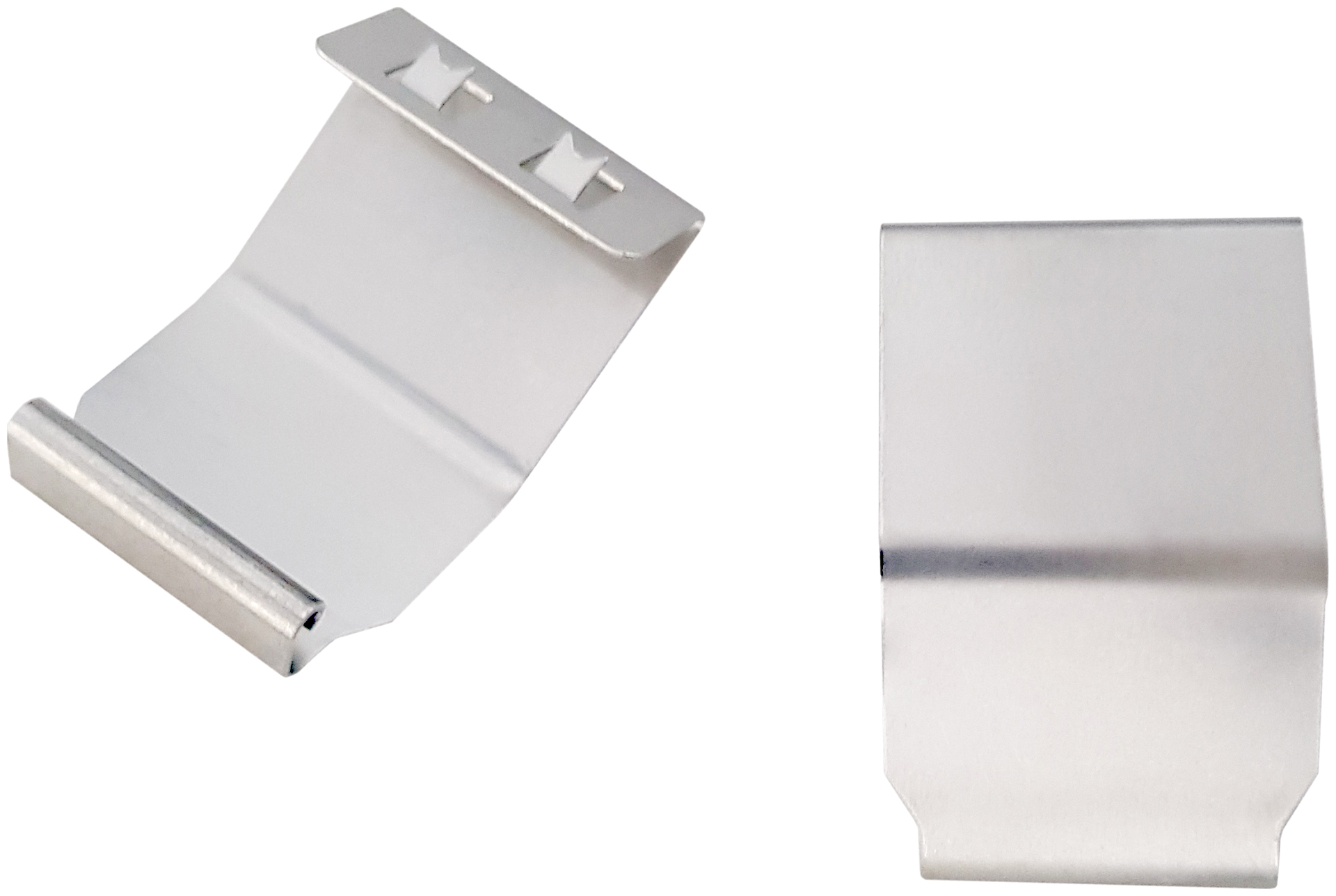 Edelstahlverschluss SET für die LZP-Leuchtenserie. Beutel mit 10x Wannenverschlussclip (V2A), 2x Trompetennippel PG13,5, 2x Deckenklammer, 2x Kettenaufhänger.