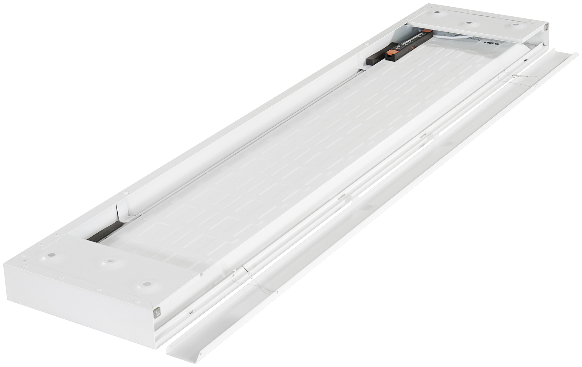 Hocheffiziente LED Backlight Anbauleuchte. MultiLumen, mit einstellbarer Lichtleistung (min/max), im Auslieferungszustand ist der Maximalwert eingestellt. Gehäuse Stahlrahmen, weiß, Leuchteneinschub Längsseitig. Mikroprismatische Abdeckung. Schutzart IP 40 raumseitig, IP 20 deckenseitig. Bevorzugter Einsatzbereich in Büro- und Geschäftsräumen. Blendungsbewertung für Bildschirm- und Büroarbeitsplätze: UGR 19.