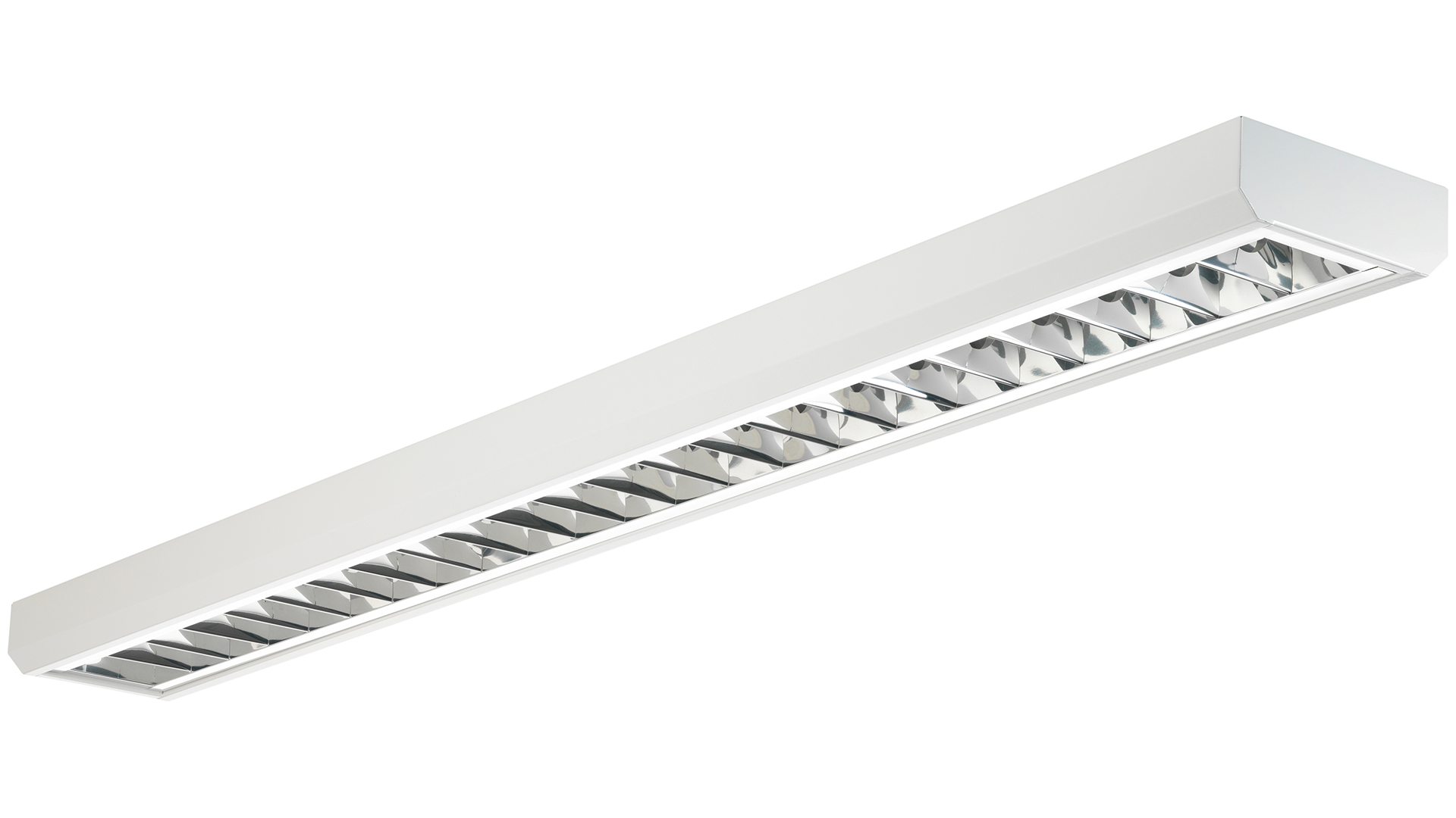 Leuchte für LED-Röhre. Stabiler Leuchtenkörper aus Stahlblech weiß, niedrige, zeitlose Bauform. Spiegelraster aus hochglänzendem Aluminium, reduziert Blendungen, so dass an Arbeitsplätzen in Büros, Geschäfts- oder Gesellschaftsräumen für optimale Beleuchtung gesorgt ist. Geeignet zur Montage direkt an der Decke. Zugelassen für den Einsatz in Innenbereichen.