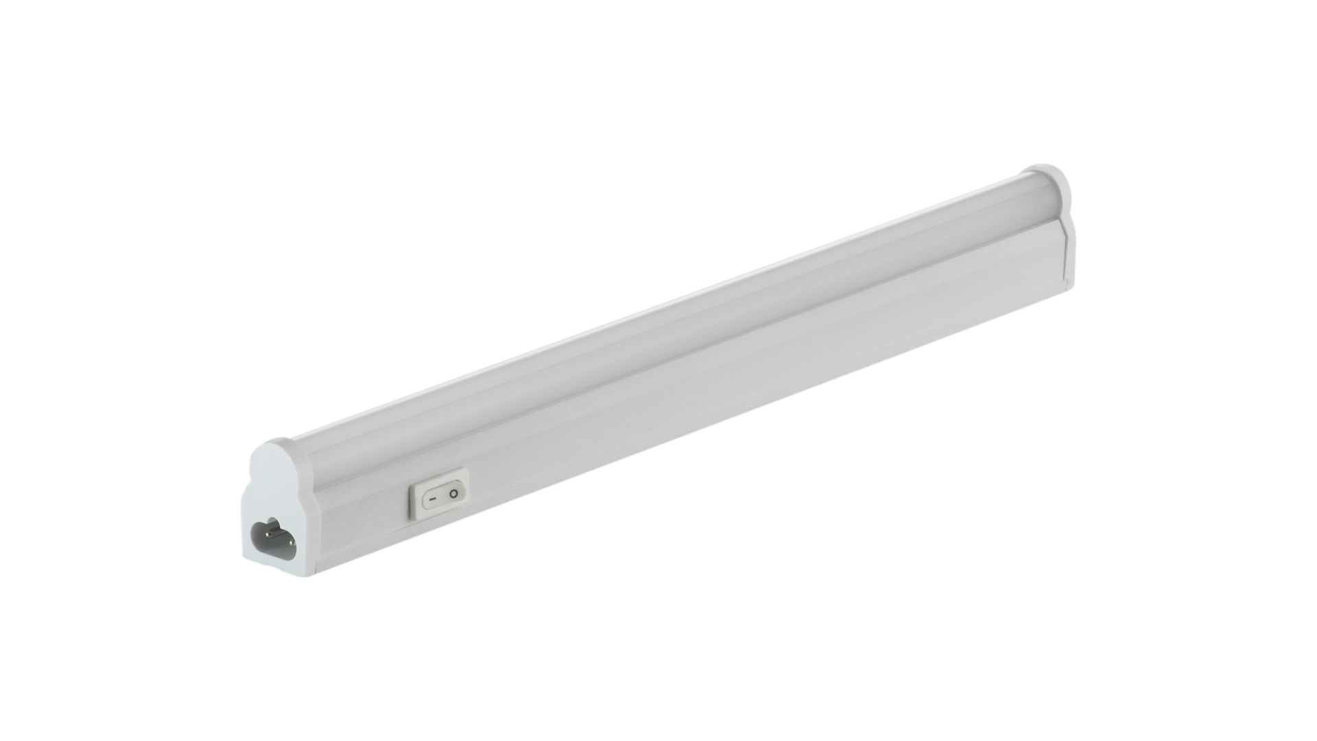 LED-Lichtleiste aus Aluminium mit Schalter für Unterschrankmontage. Minimale Abmessungen. Inklusive 2 Meter Anschlussleitung mit Stecker, je 2 Befestigungsklammern für Direkt- und 90° Winkelmontage, Kupplung und kurze Verbindungsleitung (ca. 30 cm) für Lichtbandmontage. Mit Schalter, einzeln schaltbar. Auch als Lichtband mit bis zu max. 10 Stück aneinander einsetzbar. Opal-transluzente Lampenabdeckung.