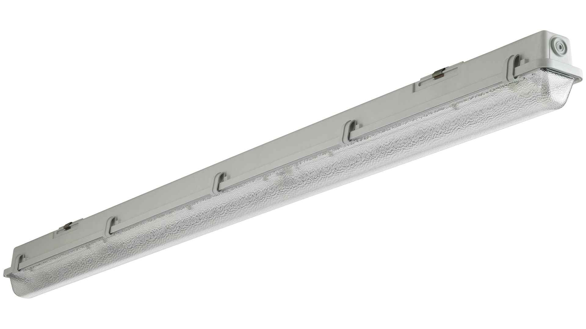 LED Feuchtraum-Wannenleuchte mit einstellbarer Lichtleistung (MultiLumen), im Auslieferungszustand ist der Maximalwert eingestellt. Schaltbar über integrierten HF-Sensor. Gehäuse aus schwer entflammbarem, glasfaserverstärktem Polyester (GRP) hellgrau. Alterungsbeständige, geschäumte Polyurethandichtung (PU). Mit integriertem LED-Konverter. Geräteträger weiß aus Stahlblech. Die LED-Module sind durch eine autorisierte Fachkraft austauschbar. Wanne aus UV-beständigem Polymethylmethacrylat (PMMA), glasklar, innen geperlt, aussen glatt. Wannenverschluss aus Edelstahl. Einfache Deckenbefestigung mit beiliegenden multifunktionalen Schnellmontage-Befestigungsklammern aus Edelstahl (Leuchte einklipsbar). Ausrichten der Leuchte durch den variablen Verschiebebereich um 60 mm. Leuchte mit begrenzter Oberflächentemperatur, für Bereiche, in denen leitfähige Stäube zu erwarten sind.