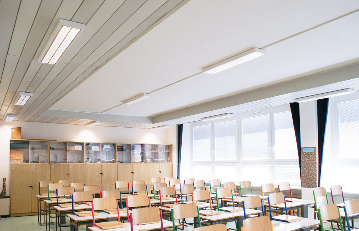 Verwendbar als Anbau- oder Pendelleuchte lässt sich die LUX frei an der Decke positionieren. Das Doppel-Parabol-Raster aus hochglanzpoliertem Aluminium reduziert Blendungen, so dass an Bildungs- und Arbeitsplätzen mit hohem Anspruch an die Blendungsbegrenzung für optimale Beleuchtung gesorgt ist. Die asymmetrische Ausführung eignet sich insbesondere für die Beleuchtung von Objekten an Wänden, wie bspw. Schultafeln oder Whiteboards.