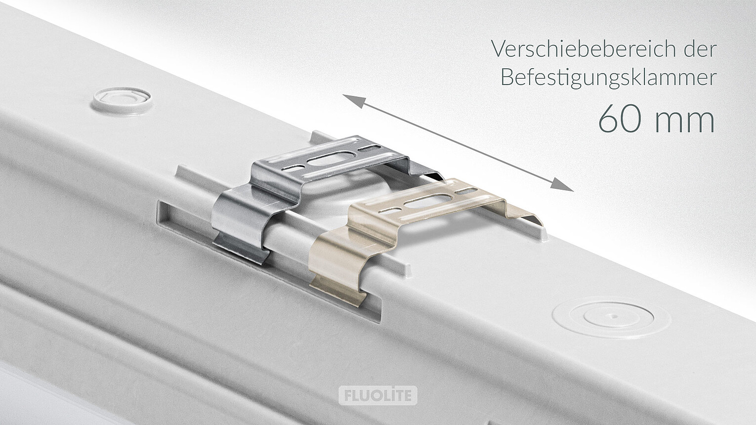 Die TRA-Tragschiene bietet eine schnelle und flexible Montage mit Fluolite Feuchtraumleuchten. In Verbindung mit dem Montagezubehör lässt sich jede Leuchte einfach und variabel befestigen und ermöglicht somit kundenspezifische Lichtlösungen.