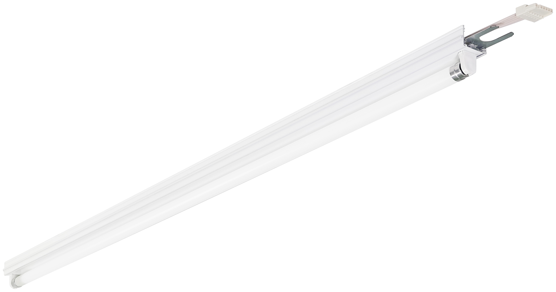 TRF Lichtleiste für LED-Röhre. Für den Einsatz von ENEC/VDE zertifizierte LED-Tubes (LED-Retrofit) an Netzspannung 230V. Tragschiene und Lichteinsatz sind eine Einheit. Gehäuse aus profiliertem Aluminium mit Durchgangsverdrahtung, Stecksystem und Schnellverschlüssen. LED-Röhre nicht im Lieferumfang enthalten.