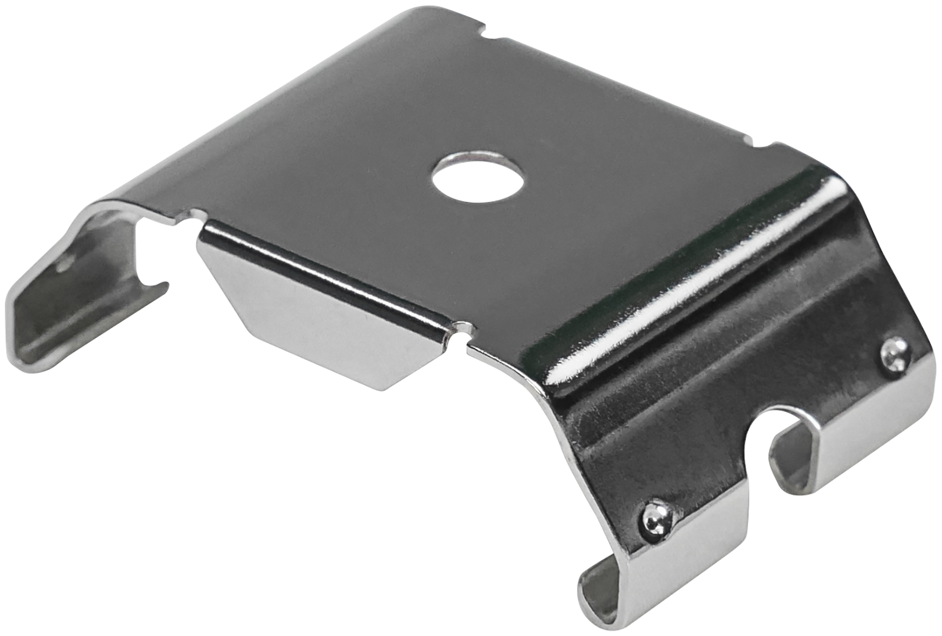 Deckenbefestiger, vernickelt. Zur direkten Deckenmontage von TRF LINE Lichtsystemen, Werkzeuglos auf die Trageschiene aufzuklipsen. Bei Lichtbandmontage werden, unter Berücksichtigung der Deckentraglast, je Lichtleiste 2 Befestiger benötigt.