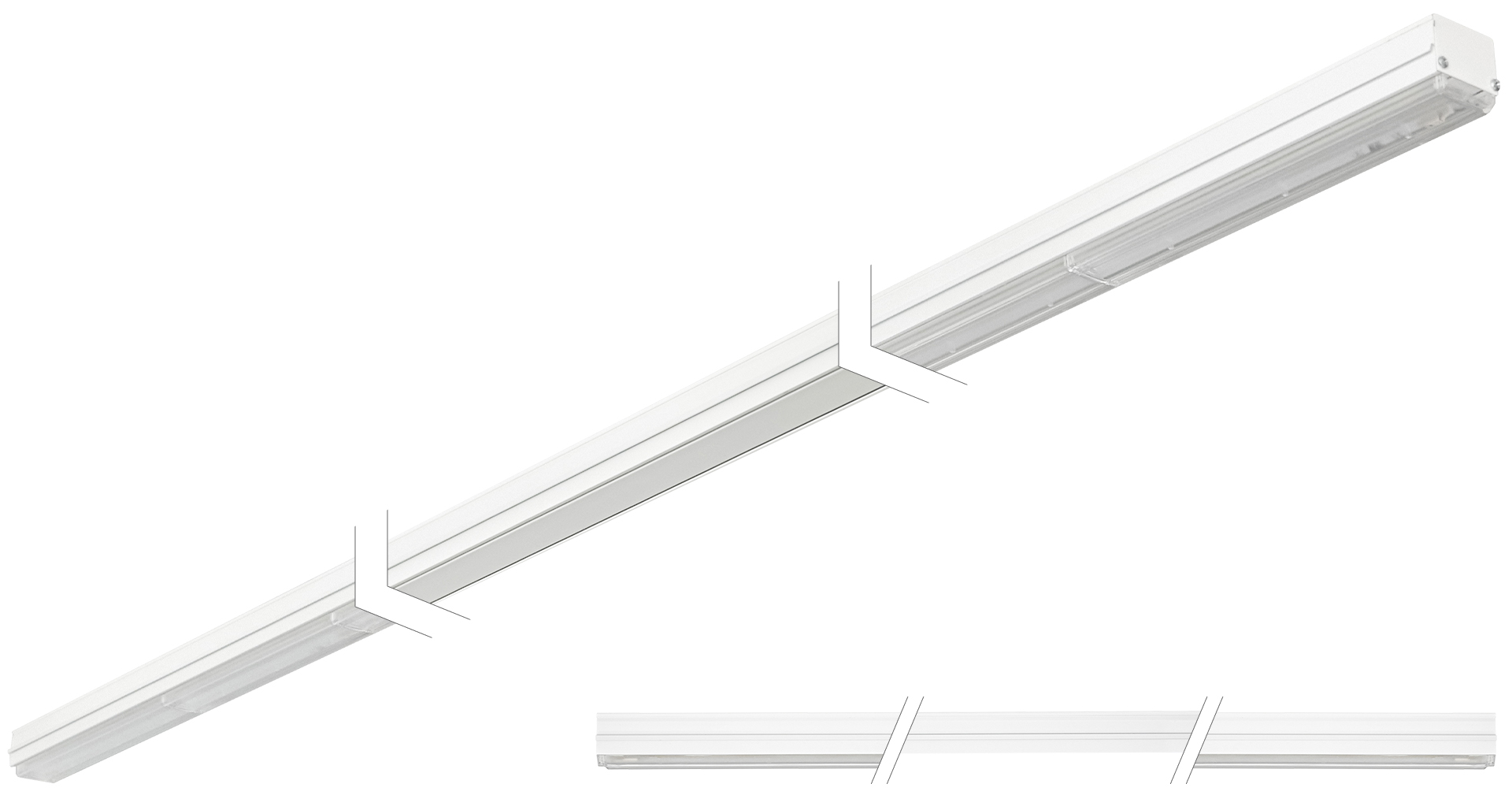TRF LED-Lichtleiste mit einreihiger, linearer Lichtoptik aus PMMA. Wide Beam, 90° Abstrahlwinkel. Tragschiene und Lichteinsatz sind eine Einheit. Gehäuse aus profiliertem Aluminium. Mit Schnellverschluss, ohne Durchgangsverdrahtung. Mit montiertem Enddeckel. Verwendbar als Einzelleuchte oder als Endmodul im Lichtband.